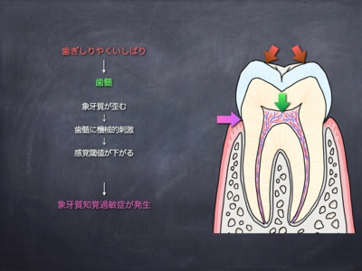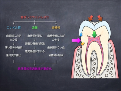 これらによって、露出する象牙質の面積が増えるために、象牙質知覚過敏を、より強く感じるようになります。