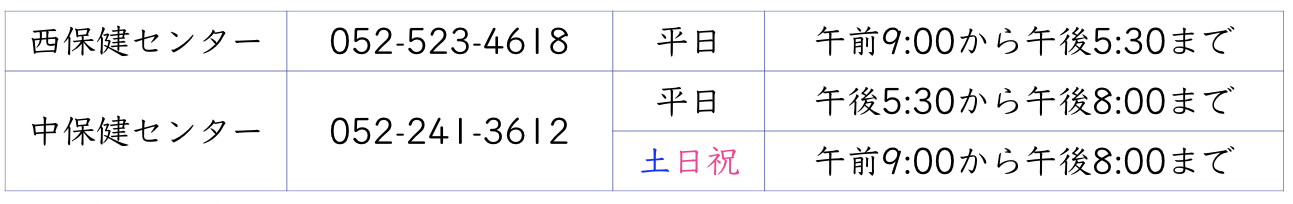 帰国者・接触者相談センターは県内31ヶ所にあります。上記 以外の自治体の帰国者・接触者相談センターは、愛知県のホームページでご確認ください。