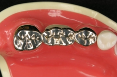 金属で一体型のフレームを作るため、高い強度を得られることから、「ロングスパンブリッジ」という連続した歯の欠損の補綴にも、余裕で適用できます。