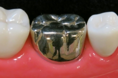 金属で鋳造した補綴物は、とても丈夫で、壊れにくい特徴があることから、歯冠補綴の素材として極めて優れていると言えます。また、加工がしやすく、咬み合わせの微妙な調整も、ほかの補綴物に比べると、随分しやすくなっています。