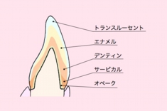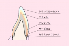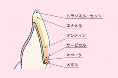 強度は金属には及びませんが、歯根への負担が少ないので、歯根破折を極力防ぐことができます。また、歯牙に近い半透明の色は、ジャケット冠と一緒に装着すると、ジャケット冠の自然な透過性を高めることができます。