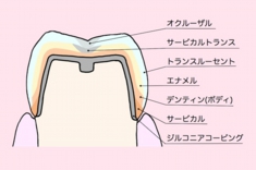 金属をベースに用いないで、その素材だけで補綴する冠が作られているものを、「ジャケット冠」と呼びます。