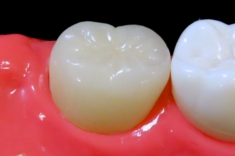 しかしながら、最近になって「高透光性ジルコニア」という、単体でも質感の高い製品が開発されてきていますので、近い将来、強度の面からも審美性も面からも、最高の歯冠素材となり得ることでしょう。