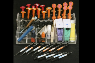 コンポジットレジンとは、審美性に優れたMMA(メチルメタクリレート)に金属微粒粉末のフィラーをカップリングして、強度を向上させた有機系充填材料です。数々の改良が繰り返され、いまや充填材料の主流となっています。ただし、コンポジットレジン自体に接着性がないため、接着剤を用いて充填します。